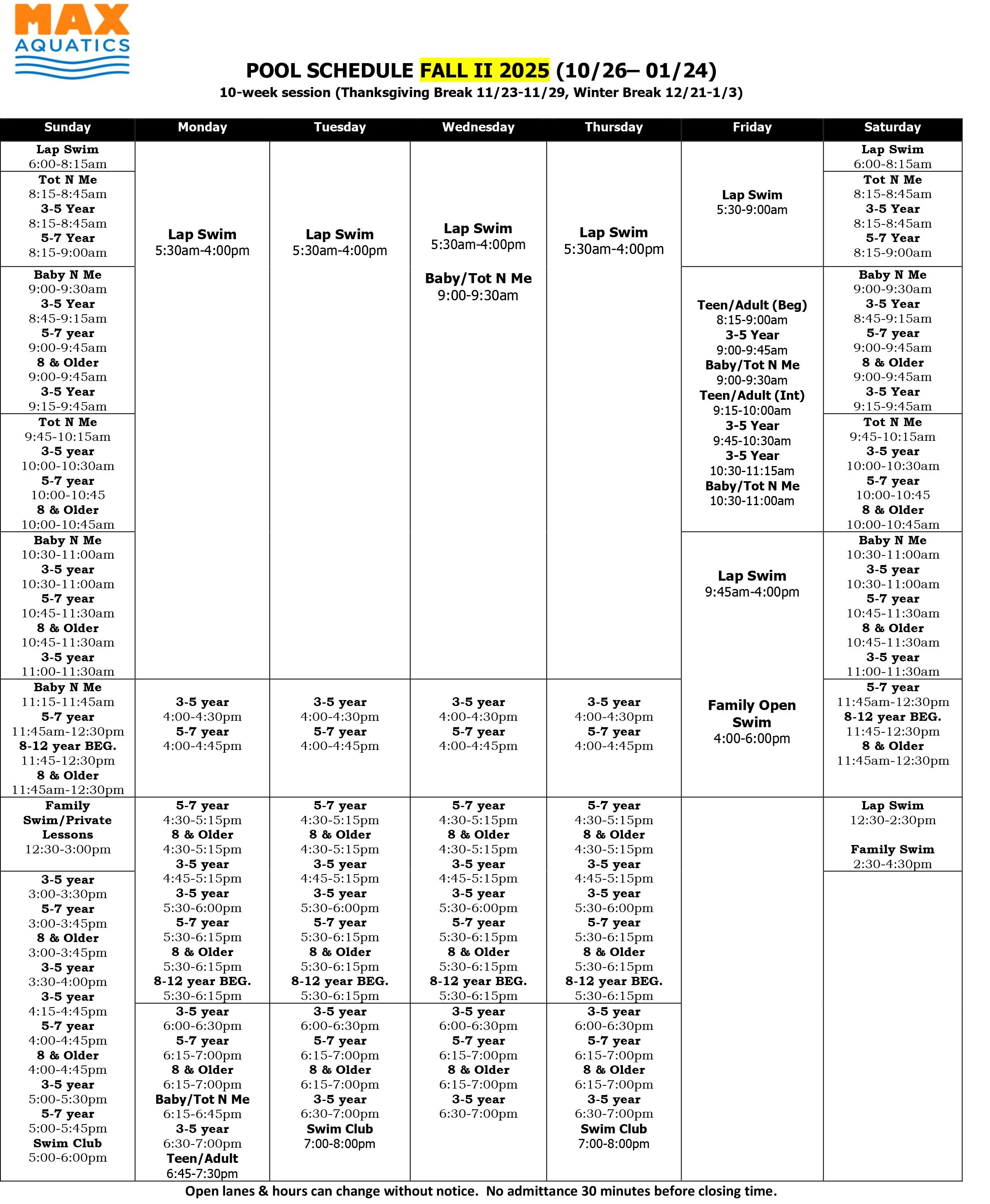 RESERVATIONS ARE NO LONGER NEEDED FOR LAP SWIM. PLEASE REFER TO THE SCHEDULE BELOW FOR LAP SWIM TIMES.